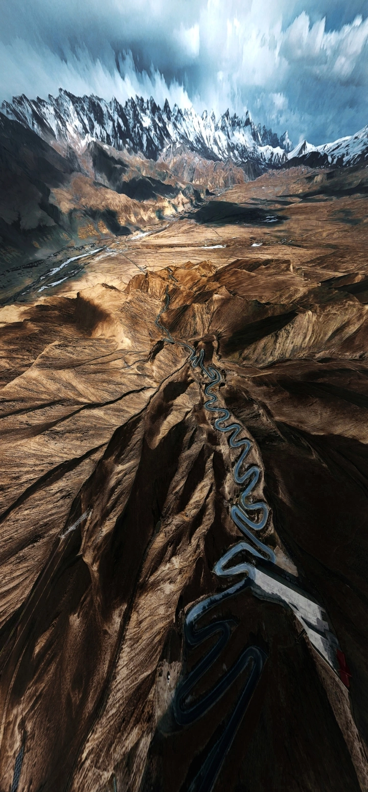 在帕米尔高原雄浑的怀抱里,盘龙古道如一条银色巨龙,挣脱大地的禁锢,向着苍穹蜿蜒腾飞。 这是勇者的征途,是天地写就的史诗长卷。每一道弯,都是岁月刻下的惊叹号,在海拔的攀升中,丈量着人类挑战极限的勇气。乌云翻涌的天际下,古道与山峦共舞,砂石与车辙和鸣,每一寸路面都浸透着开拓者的热血,每一道弯弧都回响着跋涉者的呼吸。 当车轮碾过历史的褶皱,当目光穿透云层的厚重,盘龙古道不再只是路,而是帕米尔高原献给世界的勋章——以悬崖为纸,以险峰为墨,书写着人类与自然博弈、相融,最终成就壮丽共生的不朽传奇,让每一个踏上它的灵魂,都成为这史诗里跳动的字符,在天地间永恒震颤。。。