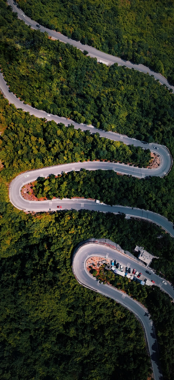 盘旋的山路,像大地蜿蜒的脉络,穿梭在翠色山林间。车轮碾过沥青,是奔赴未知的勇气;停驻的车群,又成了旅途里温馨的注脚,有人追赶风景,有人暂歇赏景,山路上的每一道弯、每一次停留,都是与自然、与自己的对话。。。