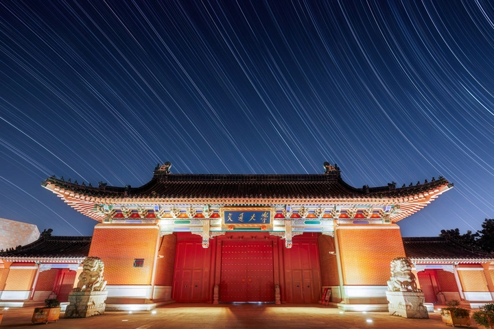上海交通大学闵行校区东大门 📷:佳能R5+RF15-35 天空:ISO100,f/4,10s,800张最大值堆栈(40%渐隐) 地景:ISO100,f/4,6s,3张平均值堆栈