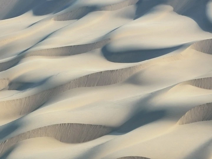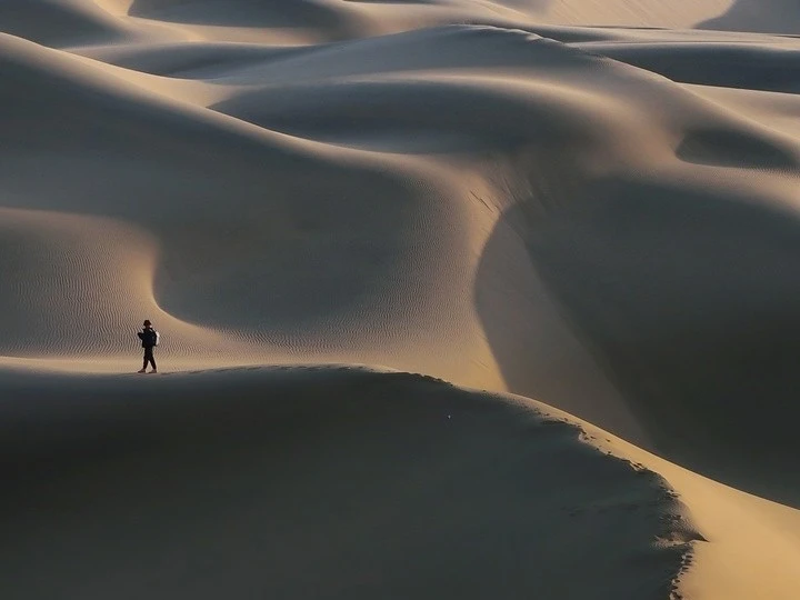 库尔塔格沙漠是我国最大的流动沙漠,这里的奇特地质结构使其成为了一个天然的风蚀博物馆。风在这里雕刻出了各种形态各异的沙丘,有的如蘑菇云般圆润,有的似利剑般尖锐。此外,库尔塔格沙漠中还存在着一种罕见的自然现象——沙鸣。在特定的气候条件下,沙子会因为风力的作用而产生共鸣,发出低沉的轰鸣声,如同沙漠在呼唤。
