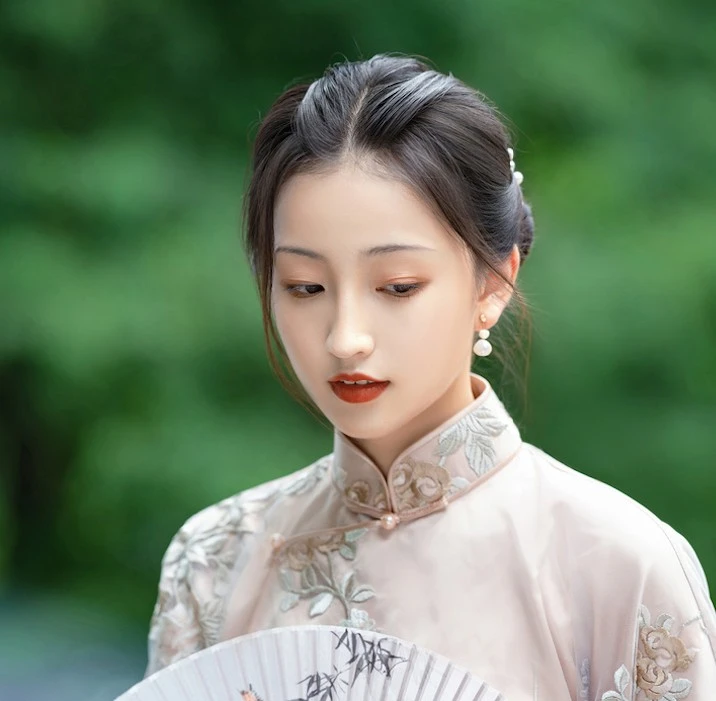 其次,耳环的款式也需精心挑选。简约而不失精致的耳环,如小巧的耳钉、流线型的耳坠,或是具有复古风格的耳夹,都能够与旗袍的复古韵味相得益彰。在选择时,可以根据旗袍的款式和颜色进行搭配,以达到整体造型的和谐统一。
