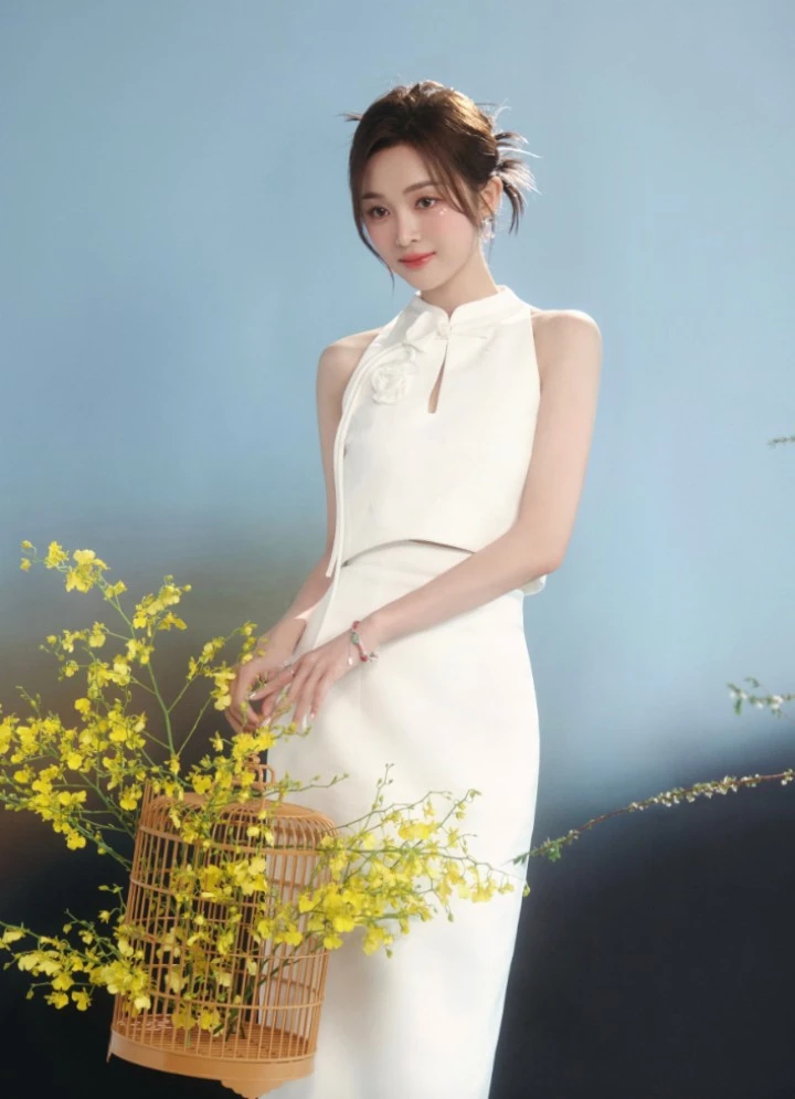 当吴宣仪身着纯净白裙优雅伫立,恰似春日诗意画卷流转。白色无袖长裙简约而不失设计感,领口蝴蝶结轻盈摇曳,勾勒柔美线条;裙摆自然垂坠,每一步都漾开优雅韵律。手挽的笼中繁花,黄色花枝蓬勃舒展,与白裙碰撞出烂漫氛围。从服装剪裁到配饰细节,温柔诗意满溢,无疑是春日优雅穿搭典范,快解锁其中的时尚密码!