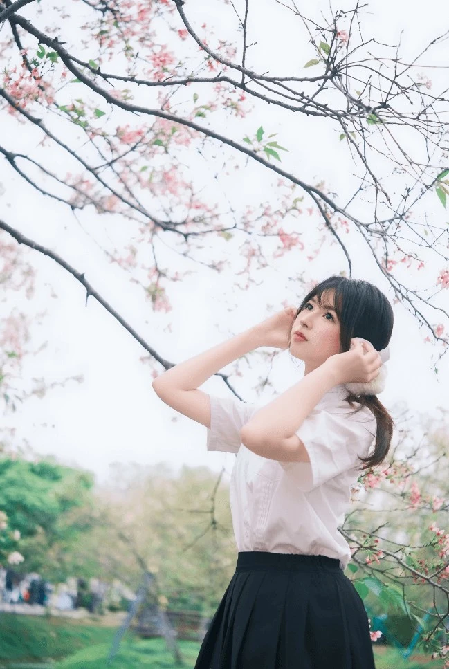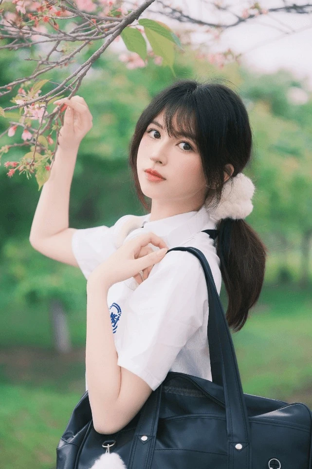 在微风轻拂、繁花初绽的春日,谁不想重拾那份独属于青春的灵动与朝气?校园感穿搭,就像是一把神奇的钥匙,能瞬间打开时光的大门,带我们回到那段青涩又美好的岁月。白衬衫,堪称校园穿搭的灵魂单品。它简洁、干净,如同春日里的第一缕晨光。就像照片中少女所穿的白衬衫,挺括的版型与柔软的面料相得益彰。微微敞开的领口,随意又不失优雅,不经意间露出的纤细脖颈,为整体造型增添了几分轻盈感。而且白衬衫的可塑性极强,单穿时,搭配一条黑色百褶裙,学院风满满;外搭一件针织开衫,又能营造出温柔甜美的氛围。