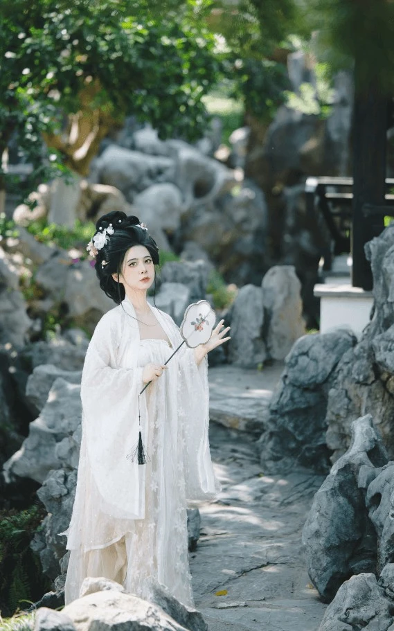 场景选择:站在林间小道或坐在树下,利用树干、树叶做前景,营造层次感;花丛旁,低角度仰拍,让花朵与汉服同框,以花衬人;湖边也是绝佳场景,站在湖边轻抚水面,或坐在湖边石凳上,将湖水、蓝天作为背景,尽显温婉。站立时,可一脚微微向前,重心放在后脚,一手自然下垂,一手轻抬或持扇,身姿挺拔又优雅;坐下时,双腿并拢或交叠,腰背挺直,手持书卷、团扇等道具,做出阅读、轻摇扇子等动作;还可以尝试一些舞蹈动作,如旋转、抬手等,捕捉动态瞬间,展现灵动之美。