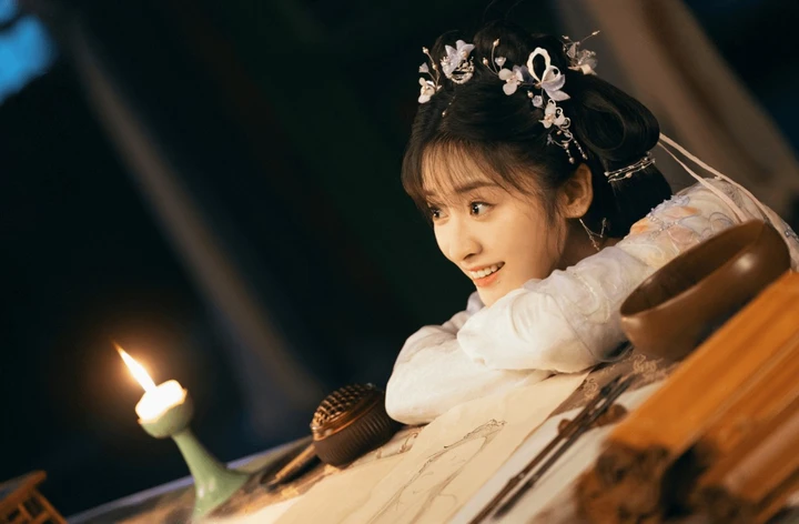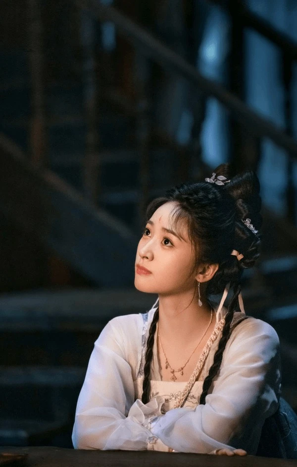 沈月的妆容同样为她的“古装萌妹”形象加分不少。淡淡的柳叶眉下,是一双水汪汪的大眼睛,眼眸清澈明亮,仿佛藏着星星。眼妆部分,巧妙地用了一点粉色眼影晕染,增加了眼部的层次感,让眼睛看起来更加灵动有神。粉嫩的腮红轻轻扫在脸颊上,恰到好处地营造出一种娇羞可爱的氛围,恰似春日里盛开的桃花,惹人怜爱。而她那一抹淡淡的粉色唇彩,与整体妆容相得益彰,显得嘴唇饱满而水润,微微上扬的嘴角,总是带着一丝甜美的笑意,让人看了心生欢喜。