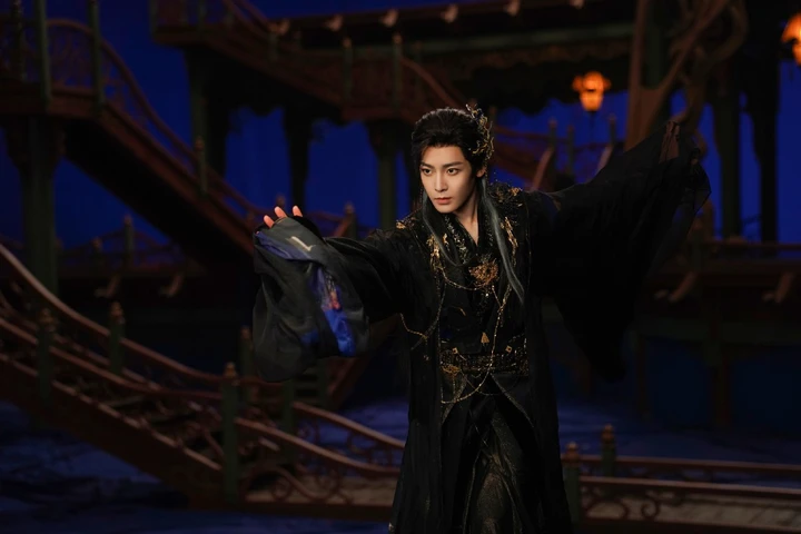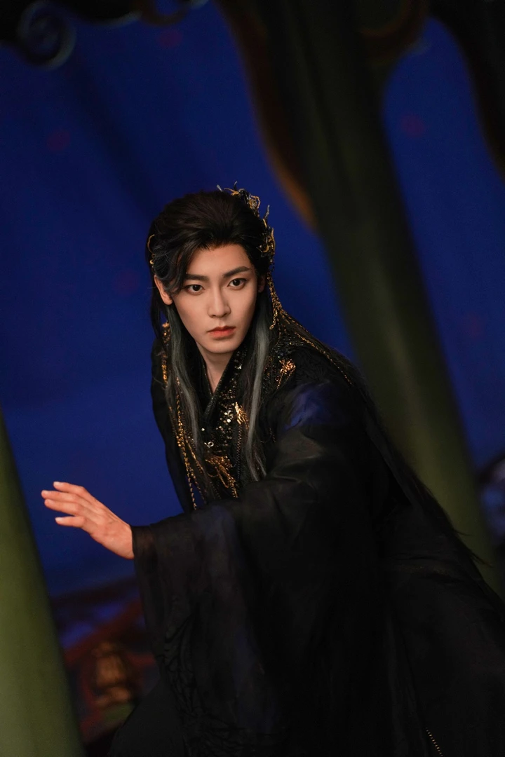 除了外形突破,侯明昊在动作戏与情感戏上的表现同样可圈可点。剧中,百目妖君以“千目幻术”为武器,侯明昊为呈现法术的诡谲感,设计了许多细微的手势与眼神变化。例如施展幻术时指尖如蝶舞般轻颤,瞳孔随咒语节奏收缩,赋予法术以“视觉化”的叙事张力。而在与翟潇闻饰演的杨一叹的对手戏中,他更是将角色的亦敌亦友、亦利用亦欣赏的复杂关系拿捏精准。一场雨夜诀别戏中,百目妖君背对昔日盟友喃喃“道不同,何必强求”,转身时一滴泪滑落却瞬间蒸发,将角色的孤独与决绝推向高潮,弹幕刷屏“心疼但不敢共情”。