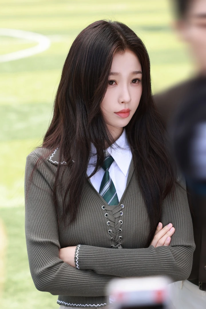 为贴近“高智感”角色,虞书欣剪短标志性长发、素颜出镜、刻意压低声线。在拍摄足球训练戏份时,她每天提前两小时到片场练习带球动作,膝盖淤青成片仍坚持完成高难度镜头。剧中林晚星的“自由式教育”更展现出虞书欣对角色的深度理解。她会在学生比赛失利时,用心理学知识拆解失败焦虑;也会在发现校园霸凌时,以“非对抗性沟通”化解矛盾。这种“智慧型教师”形象,与她以往塑造的“傻白甜”角色形成强烈反差,被业内人士评价为“虞书欣职业生涯的分水岭”。