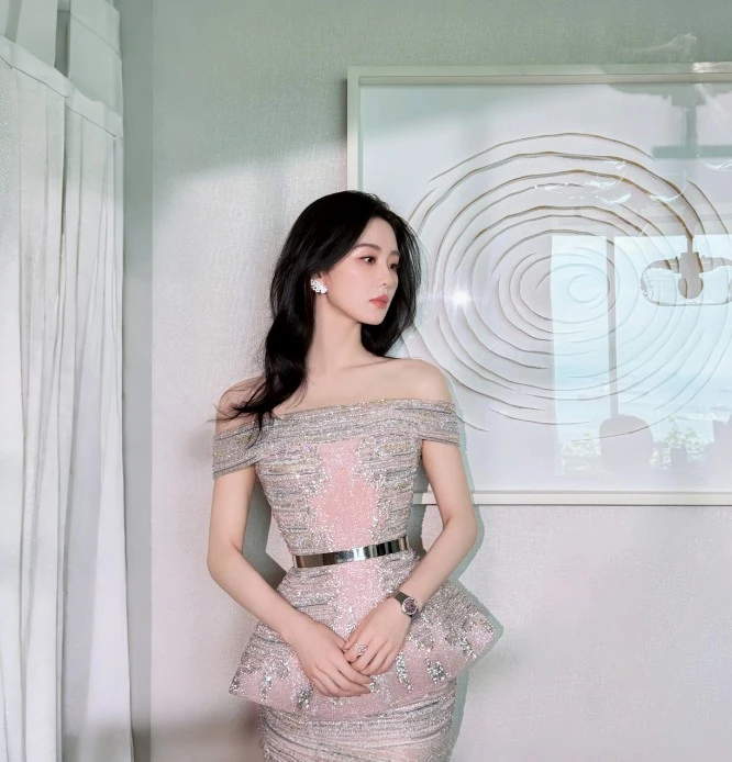 当刘诗诗身着粉色亮片礼服亮相时,仿佛将优雅二字注入了每一寸光影。这件礼服以细腻的亮片拼接出柔美的裙摆,灯光下如星河倾泻,而肩部巧妙的露肩设计则勾勒出锁骨线条,既性感又不失端庄。她的长发自然垂落,搭配淡雅妆容与简约配饰,将简约即高级的时尚哲学演绎得淋漓尽致。这组造型不仅展现了她的个人魅力,更为普通女性提供了极具实操性的穿搭灵感。