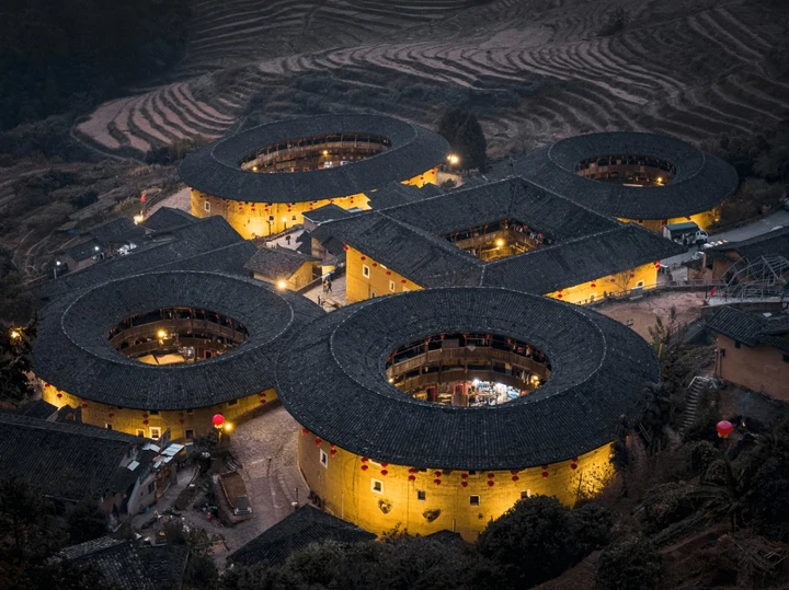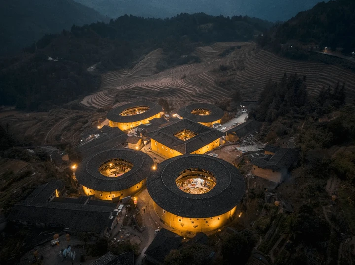 除了防御功能外,圆形设计还满足了福建人民聚族而居的需求。对于数十人甚至数百人的大家族来说,圆形的合院形式比方形更适宜。圆楼房间规格统一,避免了分配不公的问题,每个房间均分面积,可以最大程度地利用空间,减少浪费。同时,圆形土楼的中心是家族的祠堂,这种布局加强了家族凝聚力,使得所有房间都向内朝向同一个中心,象征着家族的团结和向心力。