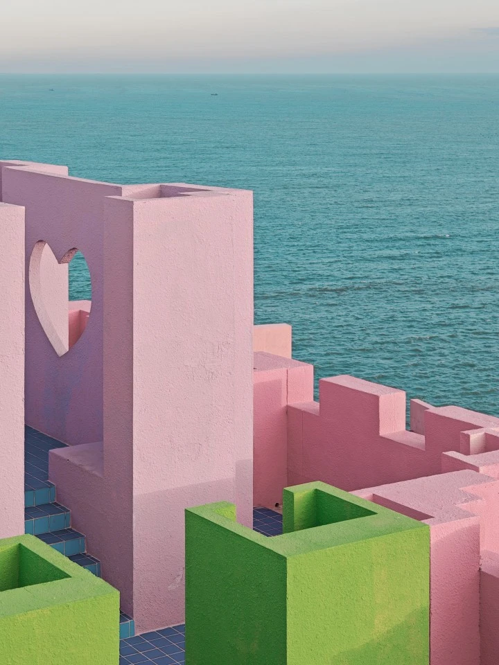 这座被称为“现实版纪念碑谷”的地方,是许多摄影爱好者和旅行者梦寐以求的目的地。当您驾车或乘船抵达漳州港后,再打车前往火山岛,一路上的风景就已经让人陶醉不已。一到达目的地,映入眼帘的是那错落有致的粉红色城堡,宛如从童话书中走出一般。城堡的设计独具匠心,其摩洛哥风格的粉色墙体与周围的自然景色完美融合,无论是入口的楼梯、楼顶的迷宫全景,还是三楼最高点俯瞰一楼的城堡,每一个角落都能成为拍照的好地点。