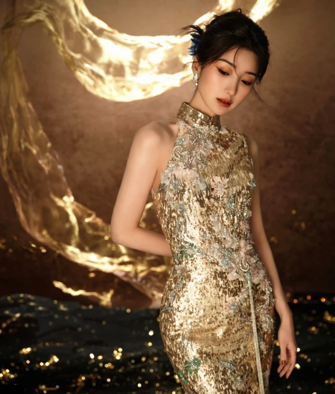 毛晓彤金旗袍造型,高贵冷艳美出新境界!