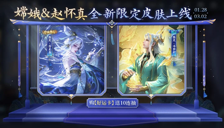 新春的余韵未散,《王者荣耀》再度为召唤师们带来了一场视觉与福利的盛宴——“器灵祈愿·珍品传说”活动现已震撼开启!嫦娥与赵怀真两大英雄携手,全新限定皮肤惊艳亮相,让你的战场更加闪耀夺目。
