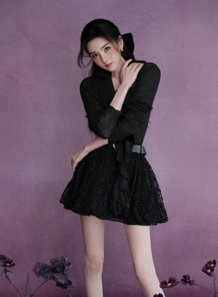 最近宋祖儿的一组写真造型,直接把“清冷感美学”玩出了新高度!紫色背景本就自带神秘、高级的氛围感,宋祖儿往那儿一坐,仿佛从油画里走出来的古典美人。朦胧发丝轻拂脸颊,把氛围感三个字狠狠拿捏:既保留了少女的灵动,又多了几分说不清道不明的疏离感,像紫丁香花束里藏着的一首朦胧诗,看一眼就被勾了魂!最主要的还是她这套黑色穿搭,针织上衣的褶皱设计精致又不显刻意,腰带轻轻一收,把纤细腰肢完美勾勒;蕾丝裙摆若隐若现,混搭银色高跟鞋,“甜酷”、“优雅”、“小性感”全融在这一身里。关键是宋祖儿驾驭得太自然,像是把黑裙的高级感穿成了与生俱来的标签,清冷中带着骨子里的贵气。