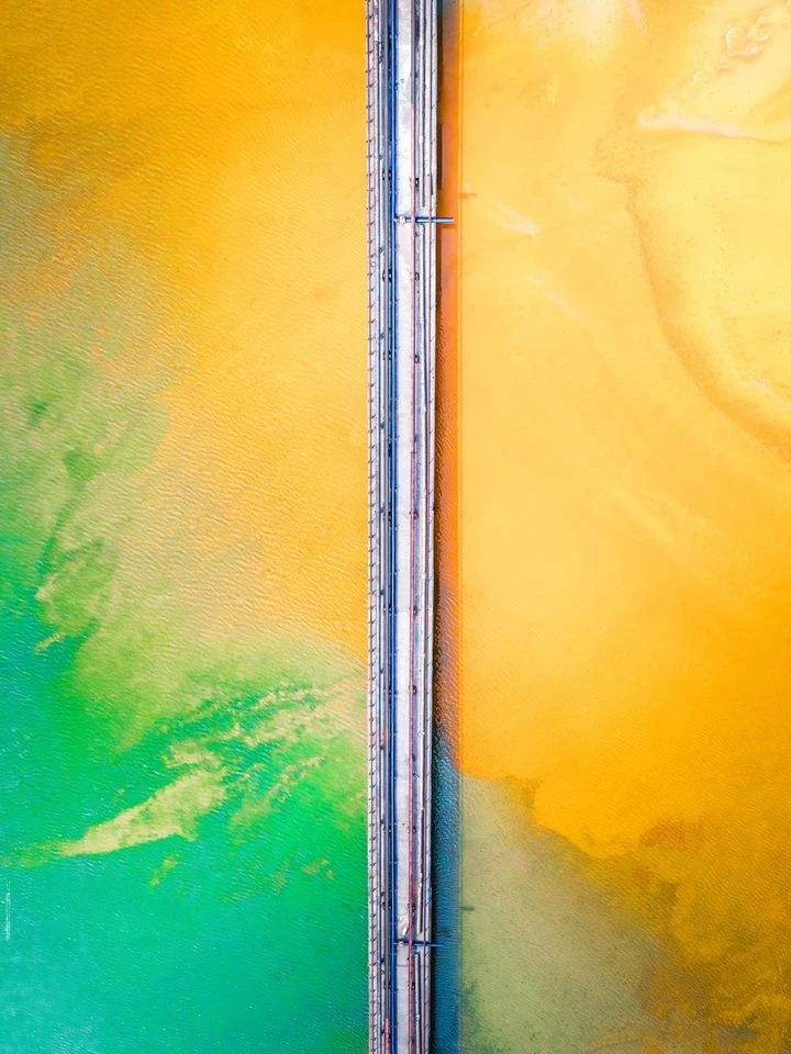 站在地面时,我们总以为熟悉脚下的每一寸土地,可航拍镜头却一次次打破这种熟悉感。你看,那片蓝是盐湖经年累“熬”出的盐分浓度,那些黄褐纹理是风与水千万次雕刻的痕迹,大自然从不用画笔,却以气候为刻刀、以时间为颜料,在大地上创作着永不重复的作品。对摄影人而言,航拍不仅是换个视角拍风景,更是学会以全局思维观察世界:当我们能像这样俯瞰色彩与肌理的碰撞,再回到地面拍摄时,也会更懂得捕捉光影里的层次、线条里的故事,毕竟,连大地都在用色彩对撞的画面告诉我们:美,从来都藏在宏观与微观的联结里。