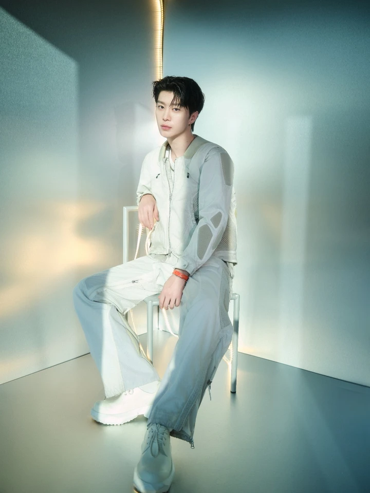 在光影斑驳的时尚空间中,范丞丞以一身极具质感的浅灰系穿搭惊艳亮相,宛如从艺术画卷中走出的优雅绅士。柔和的光线在他的衣料上流转,勾勒出服装的细腻纹理,每一寸剪裁都诉说着时尚的匠心。浅灰色的外套简约而不失设计感,肩部与袖口的拼接细节增添了层次,内搭的白色打底衫则为整体造型注入了清爽与纯净,形成视觉上的和谐共鸣。同色系的长裤版型宽松却利落,裤脚的微喇设计与脚上的白色休闲鞋相呼应,既展现出随性的时尚态度,又在低调中彰显出高级感。