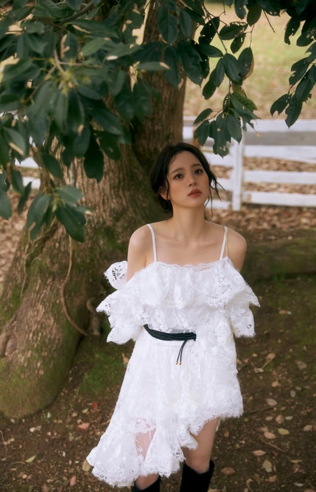 在构图方面,欧阳娜娜更是展现出非凡的审美功底。她深谙构图的黄金法则,却又不拘泥于规则,常常打破常规带来惊喜。有时,她会采用对称构图,以精准的线条和平衡感,赋予照片庄重大气之感;有时又大胆运用留白,让画面在简洁中蕴含无限想象空间。她还特别擅长利用前景构图,巧妙地将鲜花、纱幔等元素纳入镜头,增加画面层次感的同时,也为照片增添了几分朦胧的美感。这些看似不经意的构图设计,实则彰显着她对视觉美学的深刻理解。