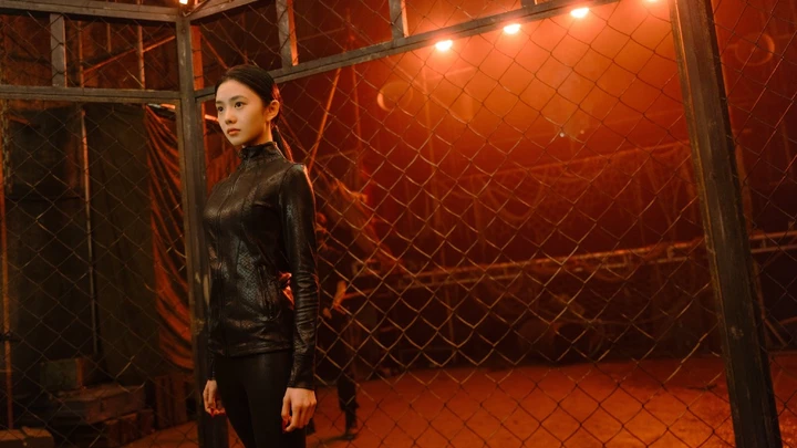 在“壁虎游墙”等高难度场景中,刘浩存凭借深厚的核心力量与柔韧性,将身体垂直贴附于墙面,动作流畅得如同水中游鱼。她巧妙地把民族舞的韵律感融入武打招式,让每个踢腿、出拳都兼具力量与美感。而在酒吧巷战的跑酷式打斗中,她灵活穿梭于障碍物间,打破传统武侠的动作套路,创造出极具现代感的“新派武侠”风格。这种将舞蹈与武术结合的创新演绎,让观众直呼“像是在看武侠电影”。