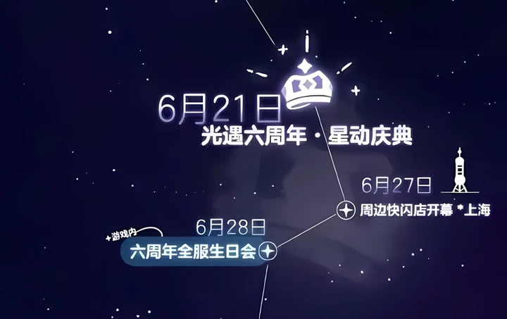 《光遇》六周年庆典从6月21日嗨到7月9日,近三周狂欢期塞满了每日主题活动:泳池派对翻贝壳、迷你王国钻纸袋、天空塔禁飞爬楼,还有小狗派对和嘉年华球赛返场,每天上线都能抱走烛火!群星影院分两阶段翻新,6月28日起不仅循环播放周年视频,当晚20:00还有生日会直播,在嘉年华找到小光小遇还能触发神秘特效,彩蛋党千万别错过~