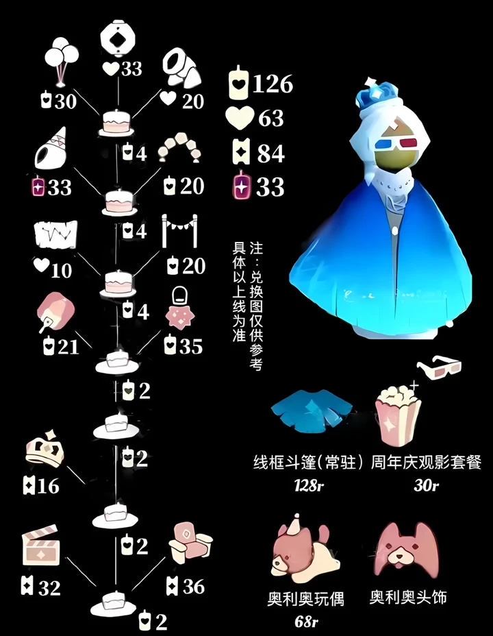 想兑换限定道具?代币获取要盯紧云巢嘉年华!水下咖啡馆潜水、缩成迷你光崽钻布袋、无翼爬塔挑战都能捡代币,参与共建影院任务也能批量囤货。这次周年庆既有128元带传送功能的线框斗篷、30元互动爆米花礼包,也有白嫖党狂喜的16代币星空皇冠、32代币场记板和36代币双人影院椅,算下来肝126白蜡+63爱心+84代币+33季蜡就能搬空免费区,零氪党冲就完事!