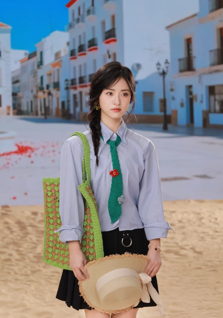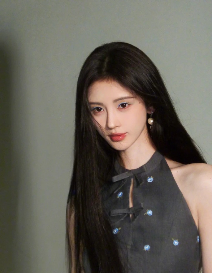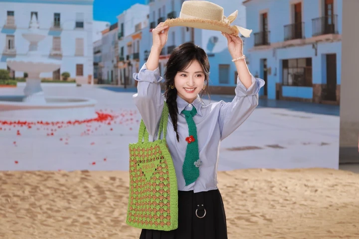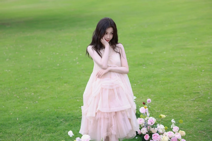 虞书欣的镜头表现力源于对“反差美学”的精妙拿捏。在综艺路透中,她身着棕色无袖连衣裙与玩偶互动时,忽而鼓起脸颊模仿玩偶表情,忽而将玩偶顶在头顶做出搞怪pose,这种打破常规的肢体语言让照片充满戏剧张力。其“撕拉片”宣传照更将少女感与轻熟风无缝衔接:学院风制服搭配贝雷帽时,通过微张的双唇与灵动的眼神传递出青春活力;而抹胸花朵裙造型中,侧头咬唇的动作又流露出小女人的娇媚。值得关注的是,她擅长通过细节强化画面记忆点——如在拍摄时故意扯乱发丝制造蓬松感,或是利用耳环、发带等配饰与服装形成色彩呼应,这种“精心设计的随意感”正是其照片出圈的关键。