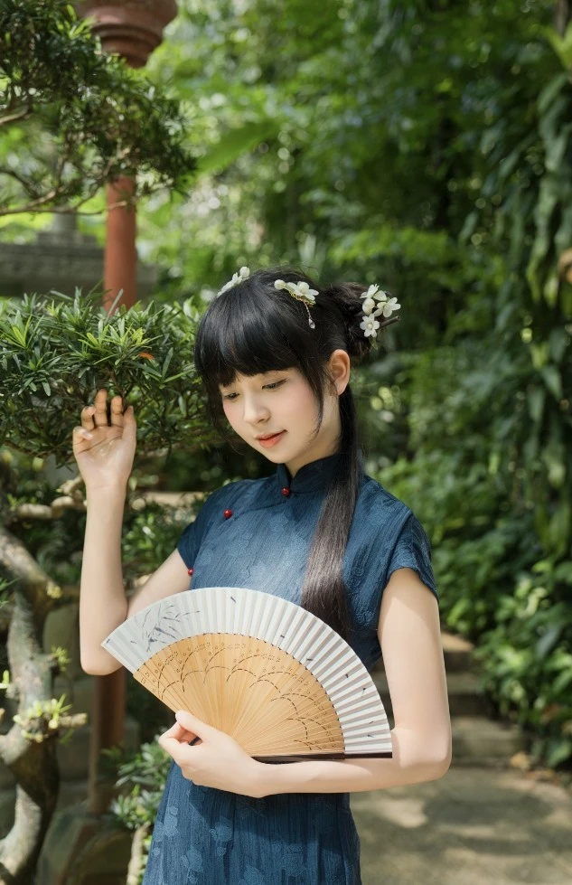 披发造型,慵懒随性也惊艳。头发较短或喜欢随性风格的女生,披发造型同样适配新中式。微卷的长发搭配珍珠发夹,或是在两侧编几股细发束拢至脑后,再点缀一枚简约的玉质发饰,既修饰脸型又增添古典气质。搭配新中式连衣裙,尽显温柔婉约的气质。