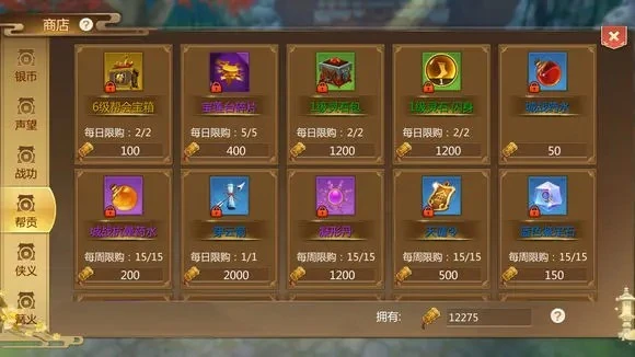 帮贡别乱花!前期优先囤夜空蝶和宝莲台碎片,高等级帮会还能搞小蟹将变身卷;后期转投1级灵石和大块光芒石,每周再抱走凝形丹和锁灵珠。侠义商店更简单,先扫空紫玄果,爱下本的囤英雄本传送符,爱打架的冲护身符,主打一个按需分配不浪费~