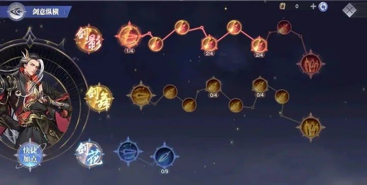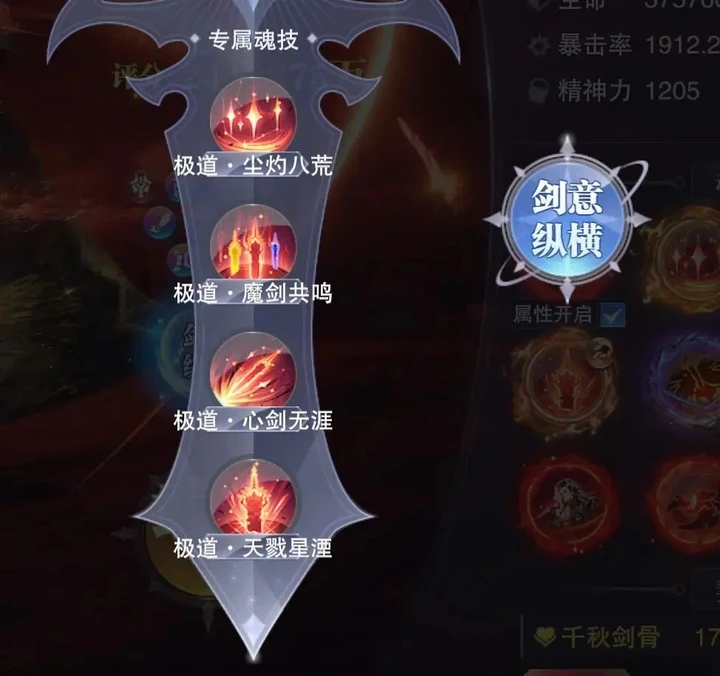 SP+尘心的机制很有特点,没有常规强攻系魂师的魂环区分,重点全在天赋树系统上。红色分支“剑影”偏PVE,能解锁快速输出、领域效果和增伤;黄色分支“剑舞”侧重PVP,有斩杀效果;蓝色分支“剑花”则需要SP尘心达标才能解锁,兼顾增伤减伤。而天赋树的技能点得靠升星获取,彩色1星和5星是明显的质变节点,尤其是彩1星才能激活红色分支的领域效果,重要性不言而喻。