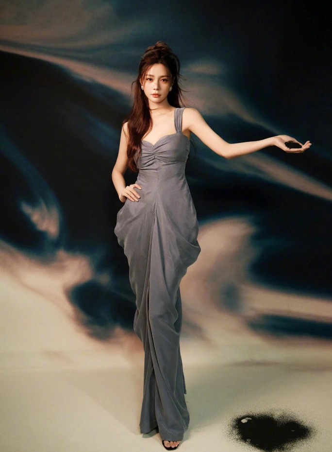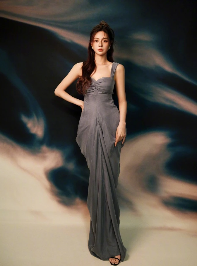 当沈梦辰以一袭灰调长裙亮相,整个画面瞬间被高级感填满。这抹独特的灰色,像是从莫兰迪色盘中精心挑选,柔和又自带疏离感,将光影巧妙揉进裙摆褶皱,每一道起伏都成了故事载体,勾勒出身体优美线条,把女性的温婉与力量平衡得恰到好处,生动诠释基础色也能玩转出独特风格魅力。