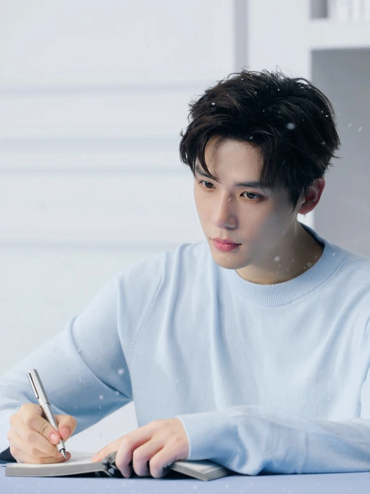王安宇是校园剧里的清爽天花板。《陪你逐风飞翔》中的花滑王子邵北笙,冰场上身姿轻盈,校园里却带着直男式憨萌,精准拿捏青春张力。蓝白校服加身时,眉宇间的阳光感扑面而来,一手行云流水的软笔书法,更给这份清爽添了几分温润底蕴。
