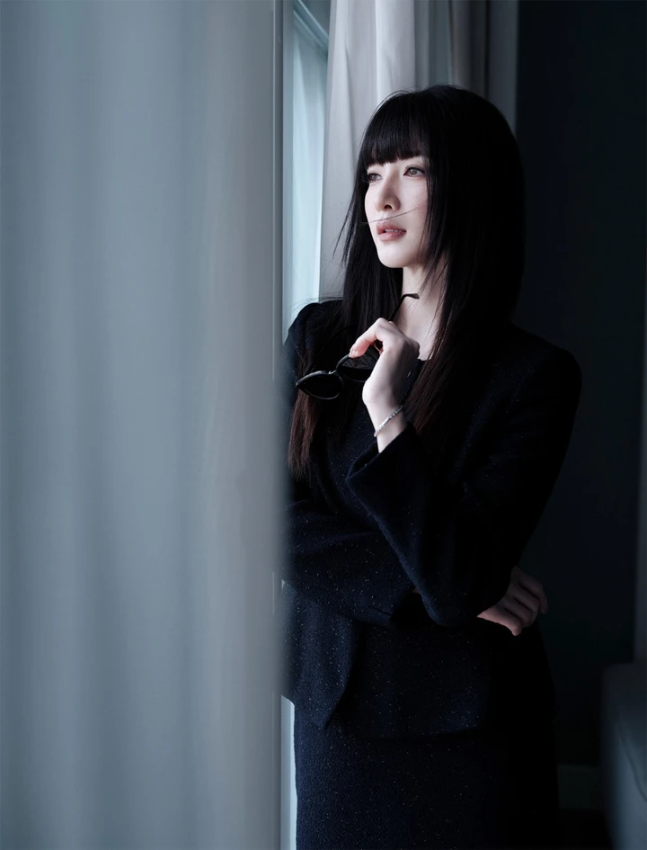 近日,江疏影在一场品牌活动中的全新造型,彻底引爆了全网讨论。以往她总是以明艳御姐的形象示人,标志性的卷发或利落的露额发型,搭配精致妆容,气场十足。而这次,她首次尝试厚重的齐刘海搭配黑长直发型,脸上架着一副圆形黑框眼镜,彻底颠覆了大众对她的固有认知。身着剪裁得体的黑色职业套装,搭配黑丝高跟鞋,整体造型凌厉中透着冷感,从之前的风情万种秒变“麻辣女教师”,巨大的风格反差让不少网友在看到照片后直呼“第一眼完全没认出来”。