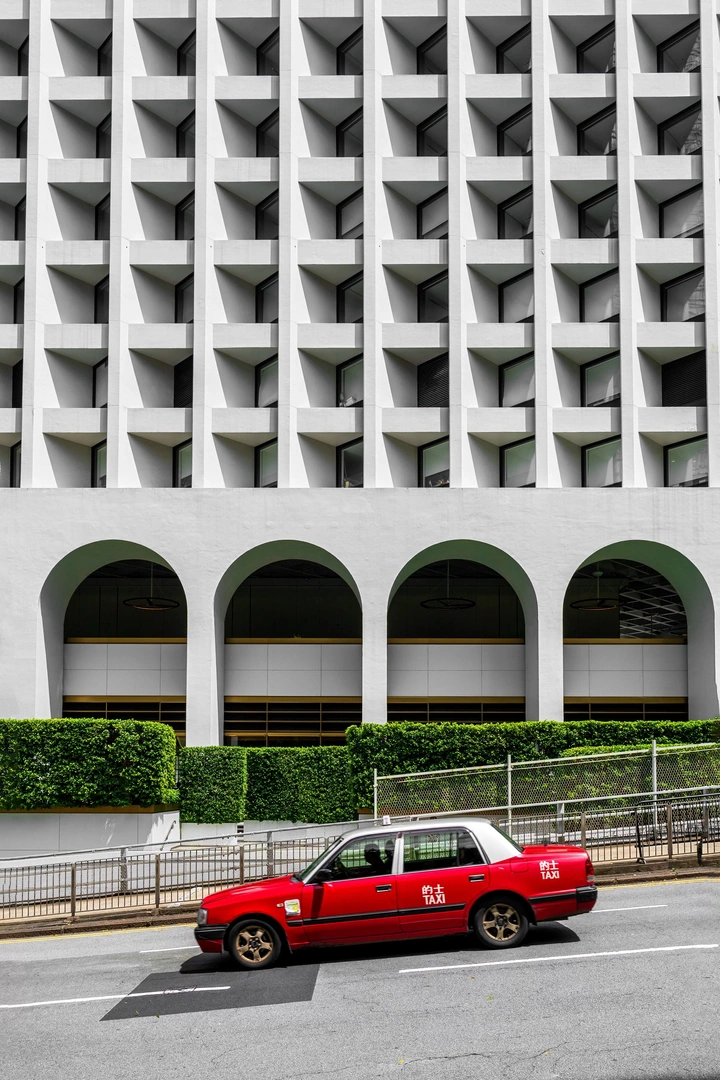 极简艺术的线条与红色出租车的极致对比 色彩与线条在这里呈现出独特的美感