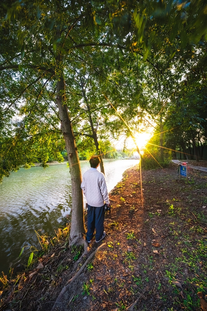 晨光照过这里 水汽弥漫成了雾 笼盖在这一篇水杉森林上空 它们穿过树梢空隙 像是一条有型的丝带 把远处的城市和此处的山水牵连在一起 城与森 这就是苏式江南水乡最美的一点