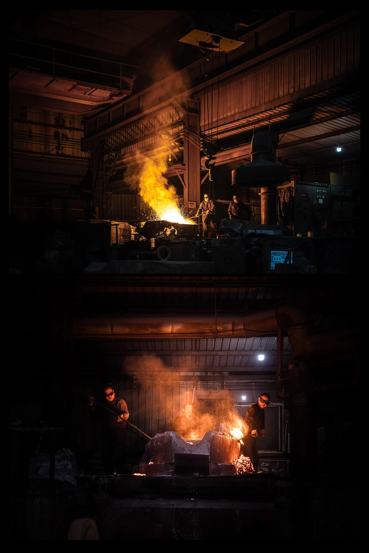 中国工业的巨轮何以滚滚向前?答案或许就藏在这毫不起眼的小型铸造厂里。这组影像记录于凌晨两点的铸造车间——工人们在灼热熔炉前,为火车轮与石油钻头注入炽热铁水。 它们是“中国制造”最原始的脉搏,这些深入细分领域的民营锻造和铸造企业,虽然规模不大,但却是中国工业体系中不可或缺的“毛细血管”和“创新细胞”,在中国工业体系中扮演着远超其规模的关键角色。它们的存在,使得中国的工业基础更加稳固、更具弹性和活力,是支撑中国从“制造大国”迈向“制造强国”的重要底层力量。