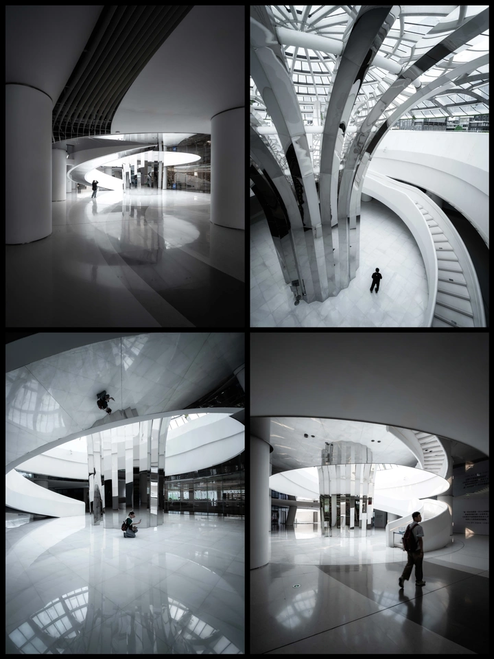 当建筑美学撞上光影与线条,再配合上融入建筑中间的行人,湾区之眼书城里面这个智慧树我给到夯爆了! 要想问深圳有什么出片的新地标,那就来“湾区之眼”吧,这里出片就像呼吸一样简单,有手就行啊! 📍拍摄机位: 深圳书城湾区之眼,北区L2的“智慧树”,由于我去的那天是阴天,不太通透,所以索性走了对比度的路线,主要突出光影与建筑结构 📸拍摄设备: 尼康z72+铭匠14mmF2.8 🚄交通: 地铁5号线【宝华站】