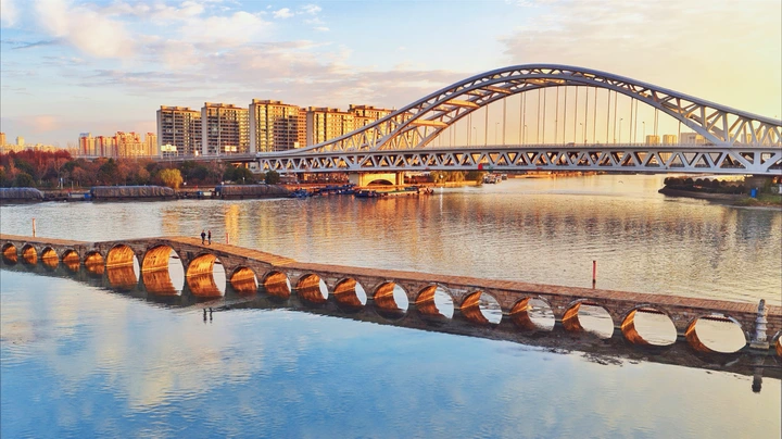一桥连古今,流水载晨昏。 颐和园玉带桥太远,来姑苏城外宝带桥👀金光穿洞