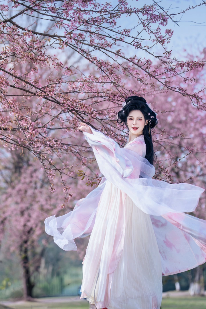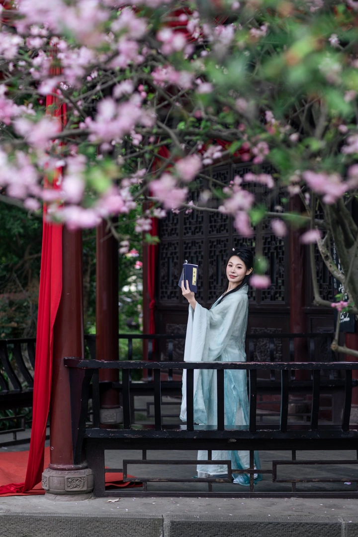 一叶一秋声, 一步一倾城。 青羊宫内银杏黄, 美人如画,画不及人。