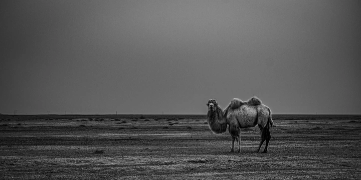 在罗布泊边缘的戈壁滩上, 风沙里藏着地球上最坚韧的生命。 这张照片记录了野骆驼在极端荒漠中的生存瞬间 单峰驼像一尊沉默的雕塑,与天地融为一体, 它们是比大熊猫更濒危的物种, 全球不足千头,每一次遇见都是幸运。 用镜头为这些荒原守护者留下影像, 也希望更多人看见它们的存在。