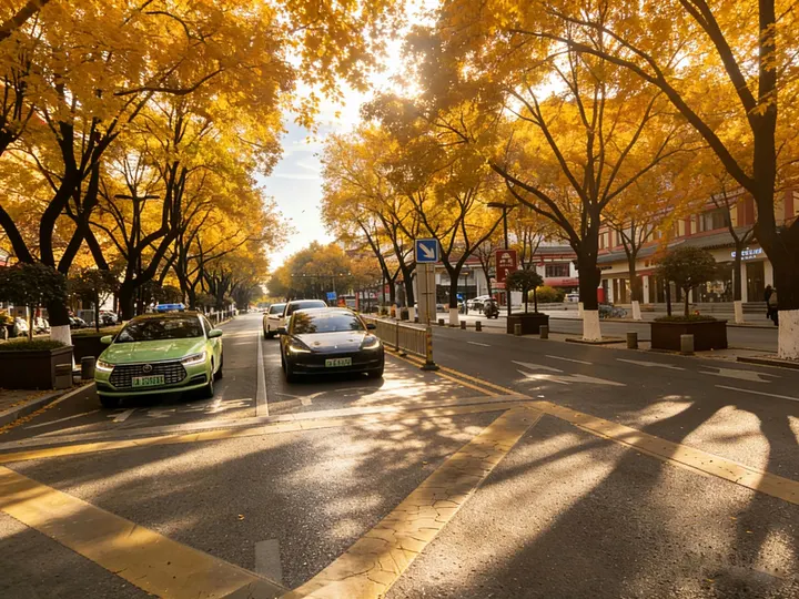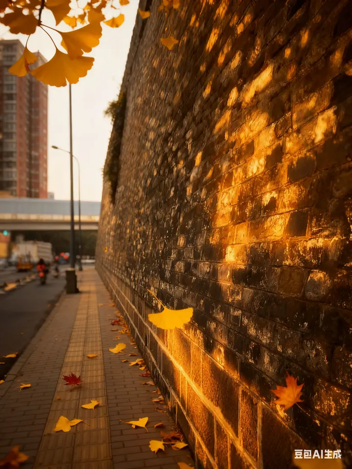秋阳斜斜地泼洒下来,把西安城墙的青砖染成了暖金色,砖缝里的光影像被岁月揉皱的绸缎,在墙面叠出深浅不一的纹路。城墙根下的梧桐叶被秋风吻得愈发金黄,一片两片打着旋儿飘落,坠在柏油路上,给车水马龙的街道铺了层细碎的诗意。 丈八北路的梧桐道上,阳光穿过枝叶的缝隙,在路面投下斑驳的树影,车流穿梭间,落叶跟着车轮的风轻轻翻卷。现代楼宇的轮廓在秋雾里若隐若现,一边是城墙的古朴厚重,一边是街道的烟火鲜活,秋阳把这新旧交织的画面揉在一起,成了独属于这座城的秋日温柔。风掠过的时候,叶子簌簌作响,像是城墙在低声诉说着时光,而街道的喧嚣,又给这份古老添了几分生动的秋意。
