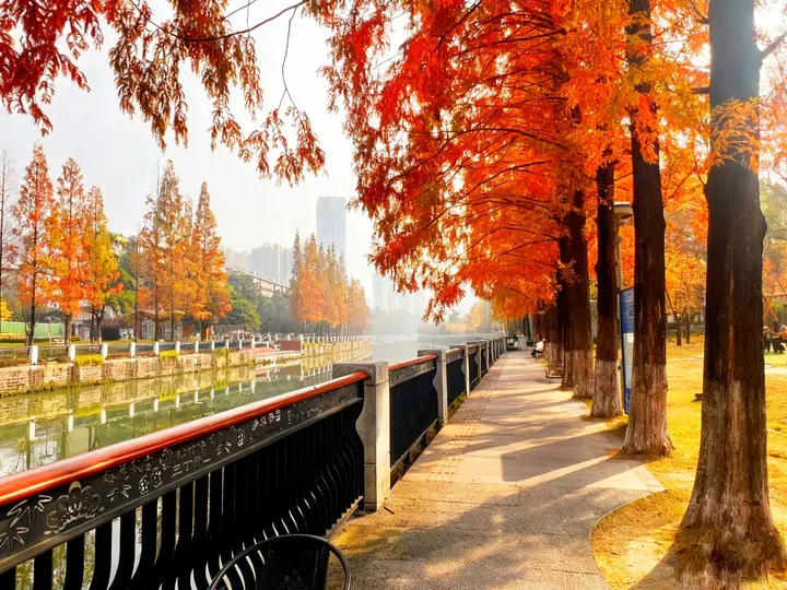 晨光漫过后子门的檐角时,府河正把粼粼波光揉进秋波里。岸边的树褪去青绿,染着桑红与金黄,风过时,叶影落在青石板路上,也落在缓缓划过河面的船舷。 偶有行人停步,看水鸟掠过水面,听远处市井的声响漫过河岸——这是成都最温柔的日常,后子门的烟火与府河的流水,正一起把秋日的时光,酿成了可细品的软。