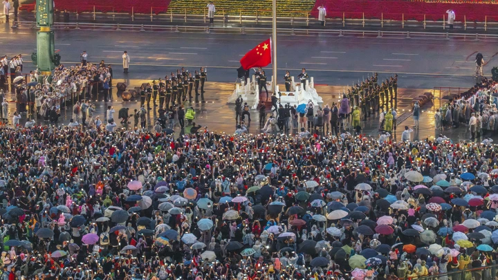 2025年10月1日清晨,成都在微凉的秋雨中迎来了新中国76周年华诞。数万市民和游客凌晨就开始齐聚天府广场,冒雨守候庄严的升旗仪式