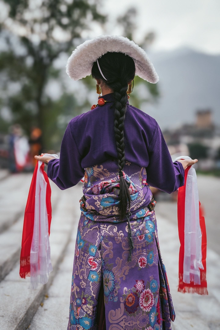 阿坝藏族羌族自治州是以藏、羌为主体的多民族聚居区,主要民族包括:藏族,羌族,汉族,回族等。拍摄了一组民族服饰,为了避免肖像对服饰观看的影响,我选择拍摄背影。