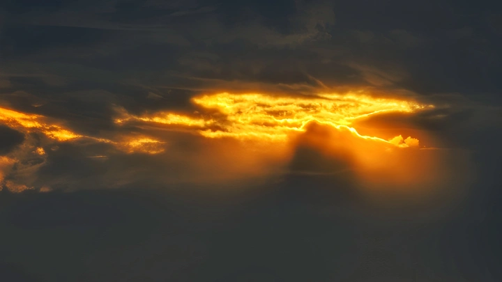 这一场日出火烧云颇为壮观,光芒涌动、云霞炽热。