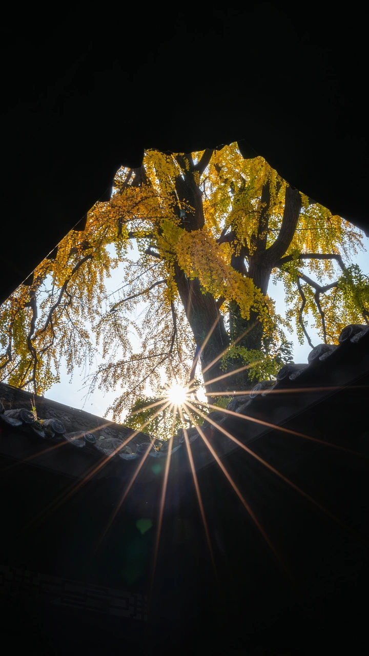 拍摄于成都温江文庙,庭院内一株银杏泛黄
