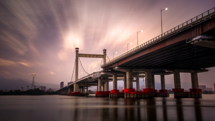 在洪塘大桥上吹着夜风,偶然间看到江上一点昏暗的灯光,勉强辨认出是一艘渔船,一抬头,又是那灯火通明的霓虹城市,一边看着渔民在黑暗江上凭借一盏灯辛勤劳作,一边想着对岸霓虹光辉中说不定也有人正为了理想而奋斗,这一切在黑夜中凭借光线相互辉映,也添上一层如梦似幻
