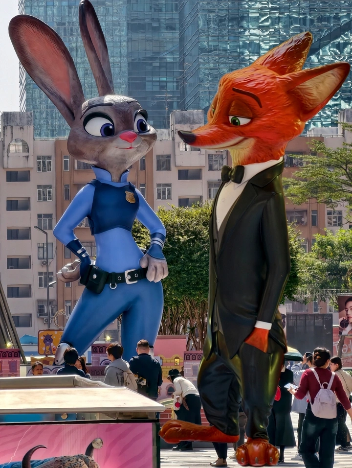 坏了,深圳变成疯狂动物城了 岗厦北地铁站7号门出来往前走,跟着指引。 可以拍到疯狂动物城 卓悦中心中央大街 有尼克和朱迪, 还有其他动物。 展览截止时间到26年2月2日 周末人太多了, 建议抽出时间下午4点左右大中午还是太晒了。 看看我拍到的吧! 调色参数仅供参考 曝光:-5 自然饱和度:+3 锐化:+3 清晰:+5 Shot on vivo X300 Pro