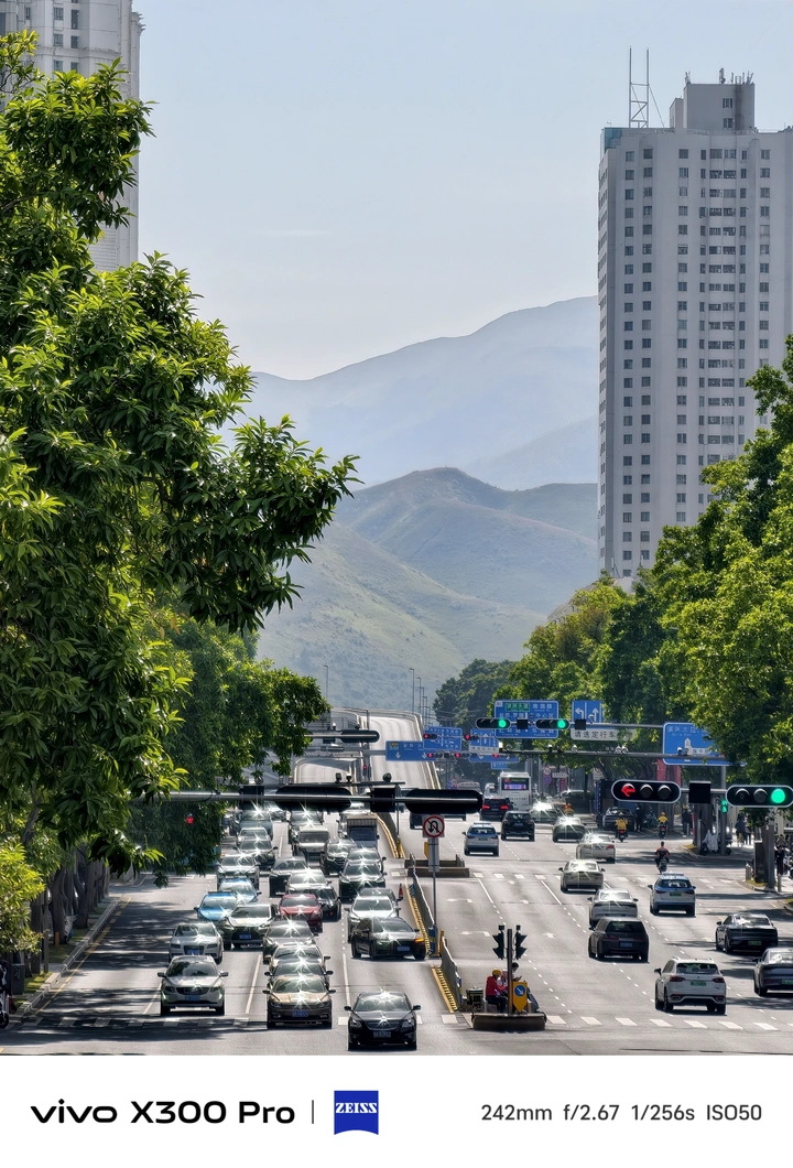坏了,深圳也能看到阿勒泰了 偶然路过, 站在天桥上吹风。 眼前的路被车流烫成一条发光的河, 阳光抖落在行色匆匆的肩头。 远处的山笼着一层淡蓝的雾, 像被城市轻轻托着, 山就在那里, 安安静静,等着你发现。 Shot on vivo X300 Pro