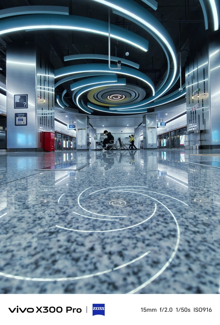 站在这方圆形的“时光漩涡”里, 看蓝白灯带像被按下无限循环键, 把地铁的风都卷成了流动的光。 脚下是镜面铺就的“另一个宇宙”, 和头顶的漩涡遥遥呼应, 仿佛下一秒就能顺着纹路滑进科幻电影里。 🚇13号线深大站 调色参数仅供参考👇 色温:-25 锐化:+3 清晰:+5 去雾:+5 🔵Shot on vivo X300 Pro