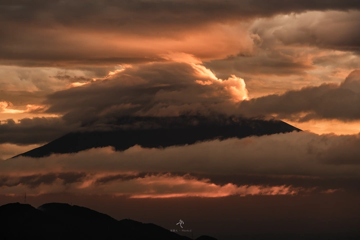 太平洋带来的湿暖空气裹带着大量的水分。空气中的水分达到了92%。就是不下雨。天空也是显得污糟糟的。拍摄于骏河湾日出时分的云裹富士。