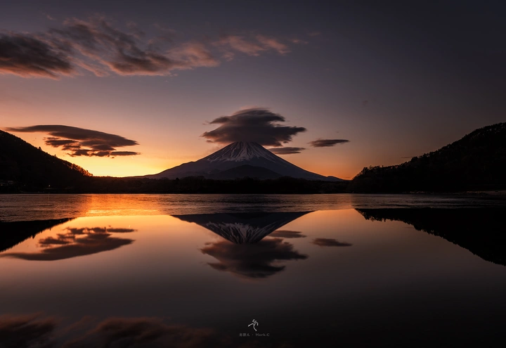 拍完了富士银河。接着继续蓝调和日出。遇到个好天气。富士山顶上的云也开始打起了转。