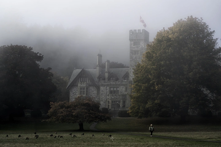 秋意渐浓。维多利亚岛上浓雾经常出没。太阳使劲的钻出云层。给秋叶抹上了淡淡的光。